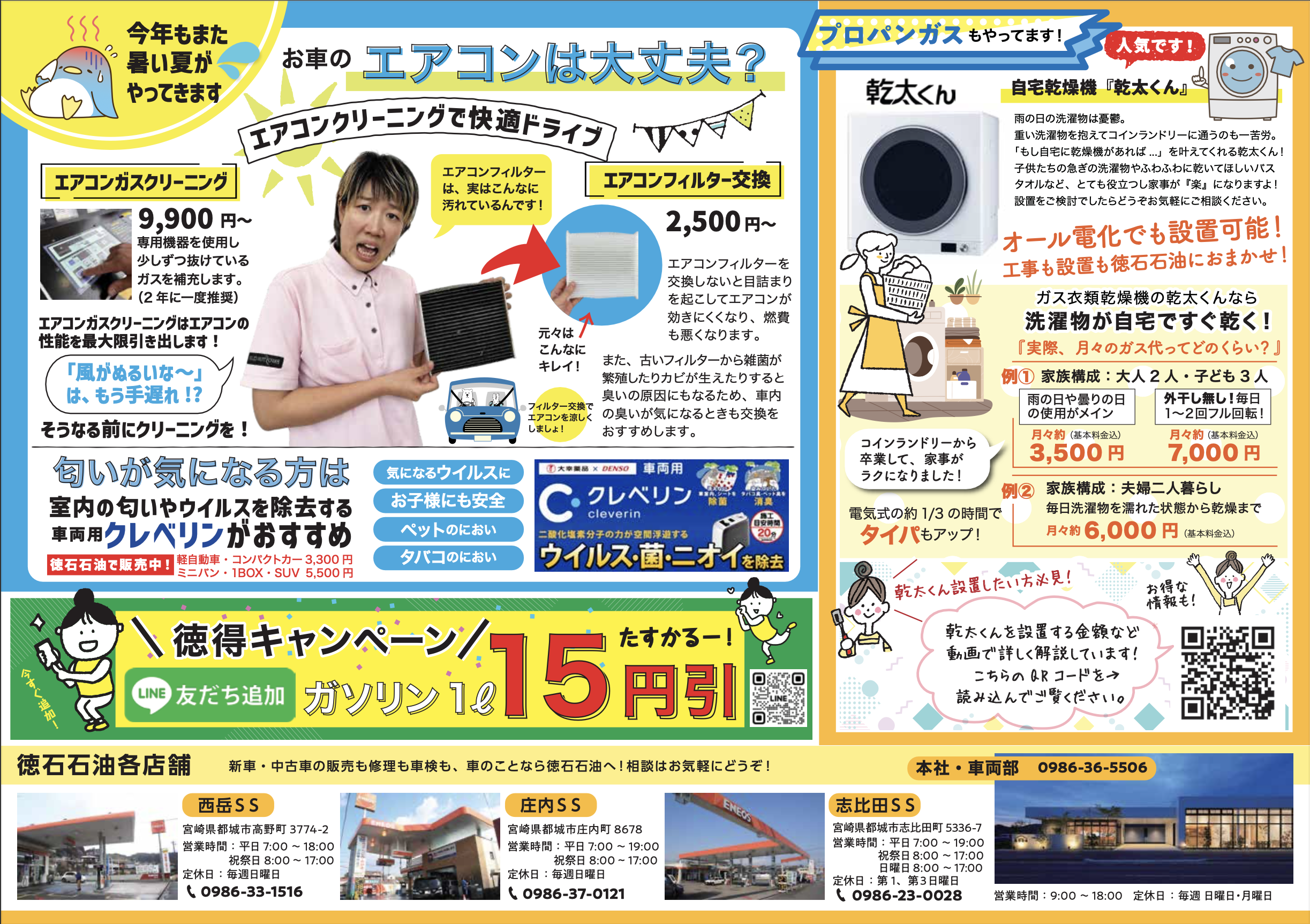 【チラシ7月号】夏が来る前に❗️エアコンクリーニングで快適ドライブ☀️